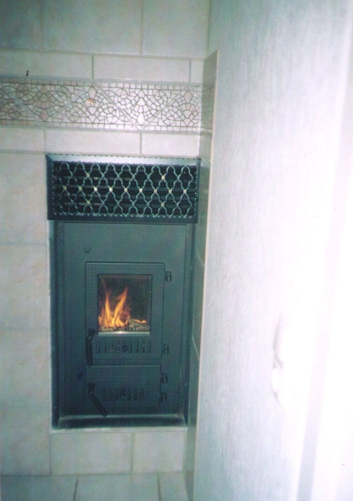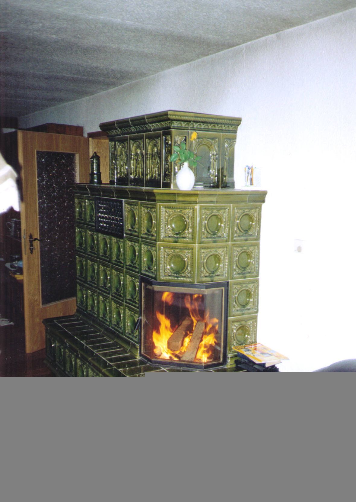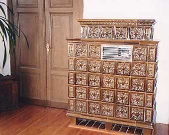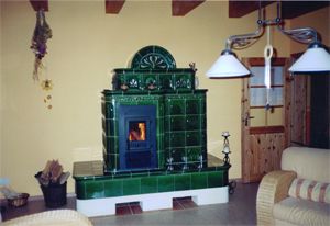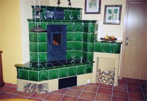 Kachelofen-Luftheizung mit Befeuerung vom Nebenraum